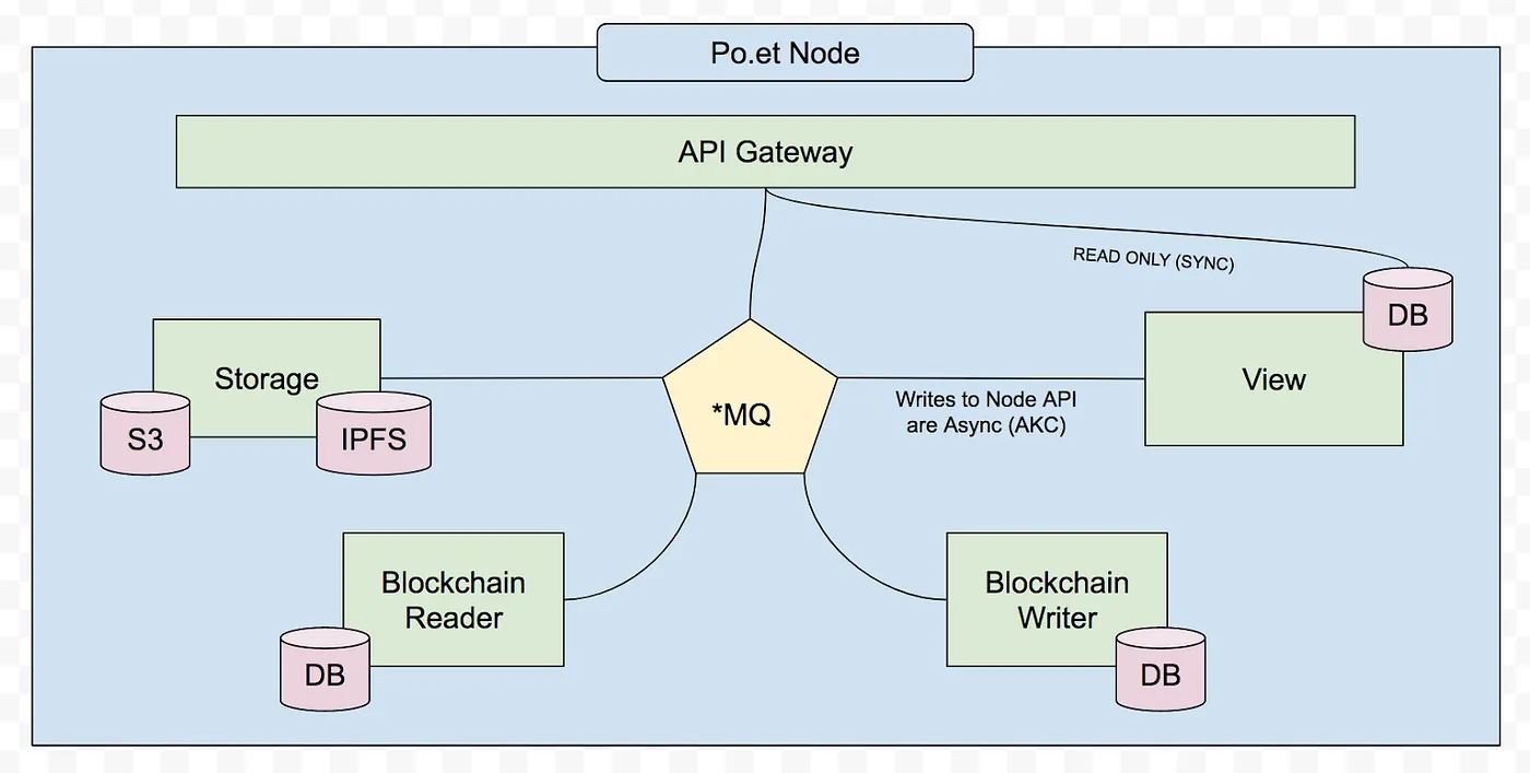 As anyone who looked at our Github repository knows, the Po.et node project had many goals and responsibilities. It was intended to have a microservice architecture, in which different containers host different projects. These projects include: